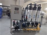 原水→原水箱→加壓泵→多介質過濾器→精密過濾器→中空超濾設備→超濾水箱