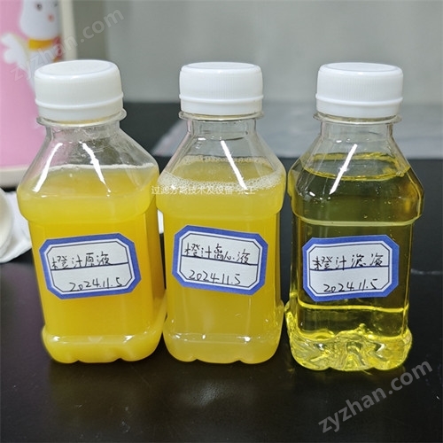 果汁超濾膜過濾:常溫物理過濾除植物纖維、果膠、細(xì)菌等大分子溶解性雜質(zhì),濾液澄清透明度高,久置不返渾沉淀,除菌率≥99%,降低后續(xù)滅菌溫度和時(shí)間,大幅度降低產(chǎn)品變色和鮮味損失;