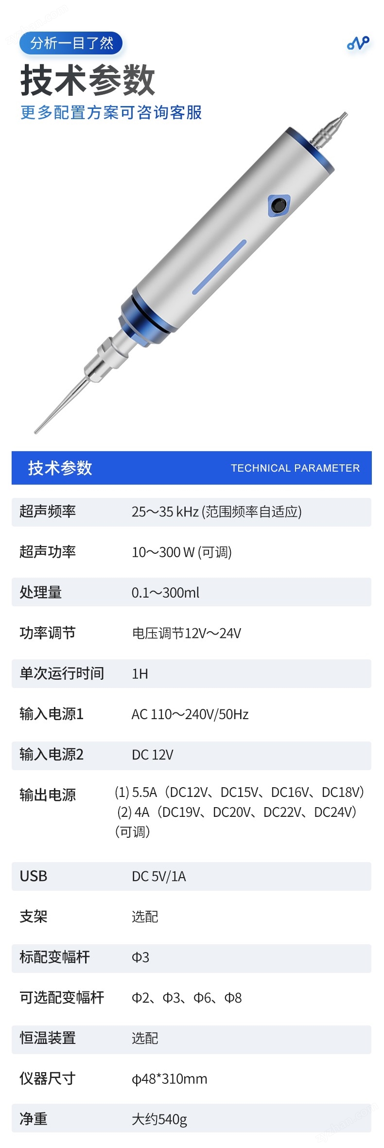 1.超聲頻率:25~35 kHz (范圍頻率自適應(yīng))