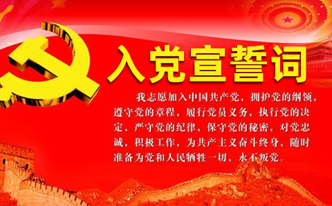我志愿加入中國(guó)共產(chǎn)黨,擁護(hù)黨的綱領(lǐng),遵守黨的章程,履行黨員義務(wù),執(zhí)行黨的決定,嚴(yán)守黨的紀(jì)律,保守黨的秘密,對(duì)黨忠誠(chéng),積極工作,為共產(chǎn)主義奮斗終身,隨時(shí)準(zhǔn)備為黨和人民犧牲一切,永不叛黨。
