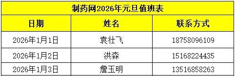 【制藥網(wǎng) 本站速遞】制藥網(wǎng)2026年元旦放假時間為:2026年1月1日-2026年1月3日,共3天。1月1日(星期四)為法定假日,1月4日(星期日)正常上班。