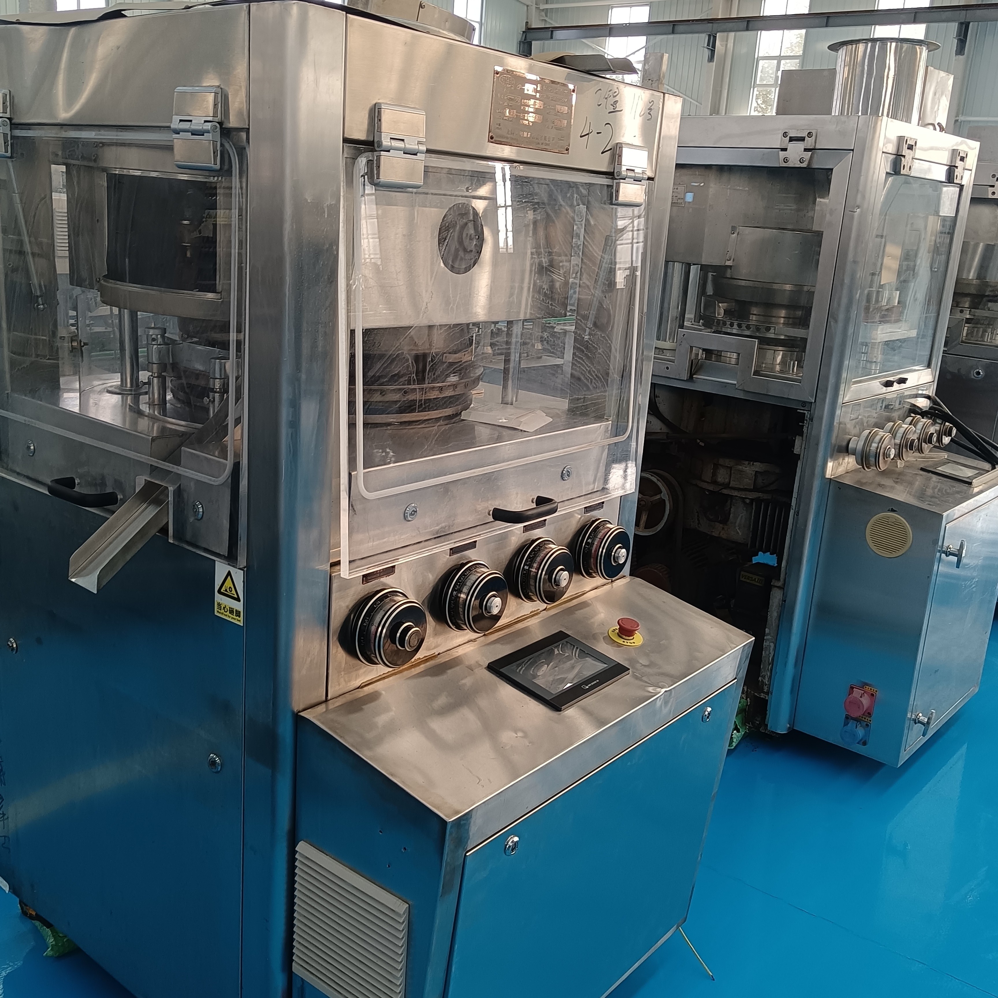 現(xiàn)代旋轉(zhuǎn)壓片機配備觸摸屏控制系統(tǒng),可一鍵設(shè)定壓片參數(shù),實時顯示生產(chǎn)速度、產(chǎn)量、設(shè)備運行狀態(tài),支持參數(shù)存儲與調(diào)用,減少換產(chǎn)時的調(diào)試時間。設(shè)備還集成過載保護、缺料報警、堵轉(zhuǎn)停機等安全功能,當物料填充不足、壓力過載或出現(xiàn)卡機時,會自動停機保護,避免設(shè)備損壞和物料浪費。同時,與物料接觸的部件(如料斗、加料器、沖模)多采用不銹鋼材質(zhì),拆卸清洗方便,降低交叉污染風(fēng)險。