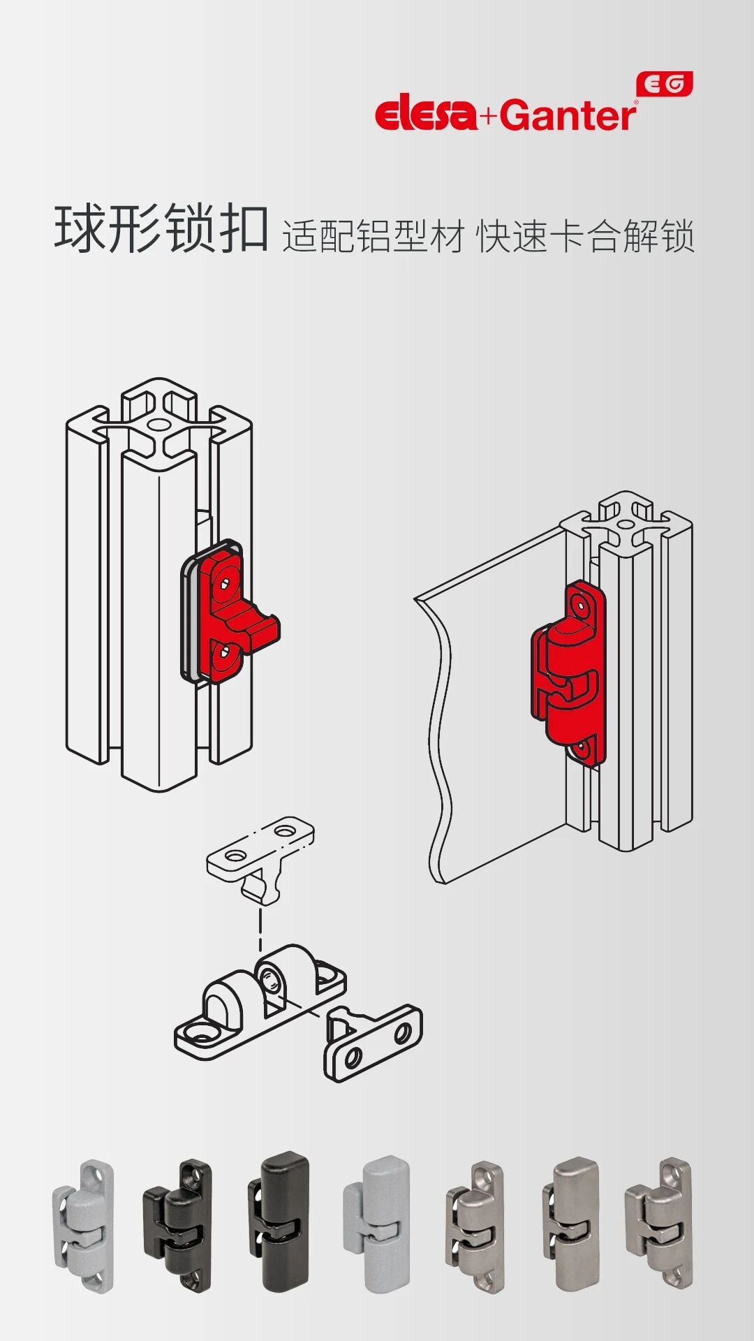 GN 4490球形鎖扣專為移動(dòng)部件提供優(yōu)雅省空間的安全鎖定方案。